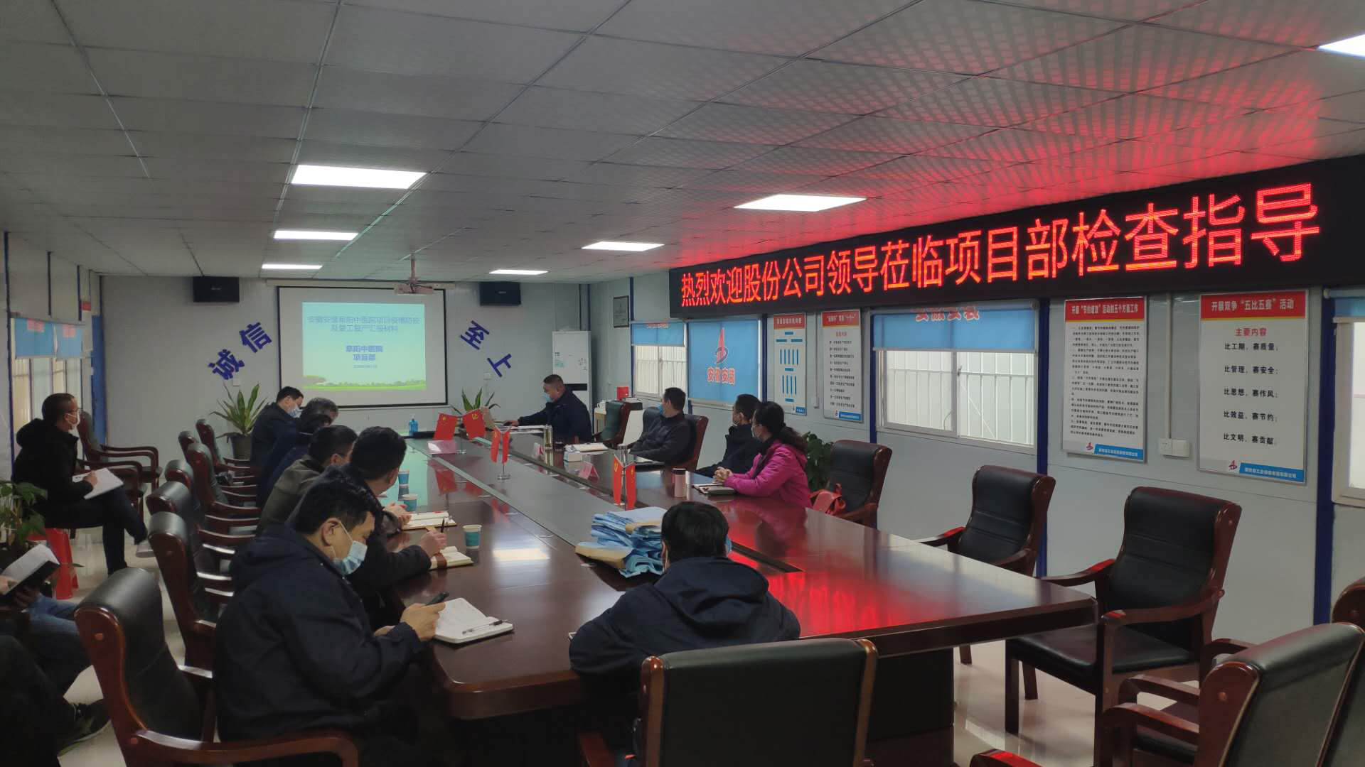 在聽取匯報后,黃代首先充分肯定了項目部在疫情防控、復(fù)工復(fù)產(chǎn)等方面所做的工作,強調(diào)在做好疫情防控工作的同時,要全力實現(xiàn)達產(chǎn)超產(chǎn),并對項目部下一步防疫和生產(chǎn)工作提出要求:一是高度重視疫情防控工作,在安全復(fù)工的同時抓機遇搶產(chǎn)值,全力實現(xiàn)項目產(chǎn)值目標任務(wù);二是持續(xù)強化黨建引領(lǐng)作用,發(fā)揮好黨員在項目建設(shè)和疫情防控工作中的先鋒模范帶頭作用,做到越是艱險越向前,始終牢記宗旨,不忘初心,讓黨旗在防疫一線高高飄揚;三是要抓好生活區(qū)域衛(wèi)生防疫工作,定時消殺,食堂嚴格執(zhí)行分餐制,錯時就餐,最大限度地減小人員聚集;四是切實做好復(fù)工返崗人員隔離觀察,做好復(fù)工人員的動態(tài)管理工作,嚴格執(zhí)行集團和屬地有關(guān)疫情防控規(guī)定,從源頭上防范疫情發(fā)生。