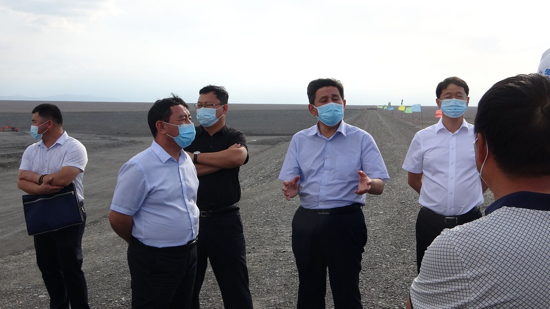 2020年7月5日下午,塔城地委副書記、行署專員木合亞提·加爾木哈買提赴安徽安裝公司新疆烏蘇市供水改擴建調節蓄水池工程調研指導工作,烏蘇市委副書記、市長阿達力別克·巴合提汗,市委常委、副市長賈成海,副市長牛義強、李鴻等參加。