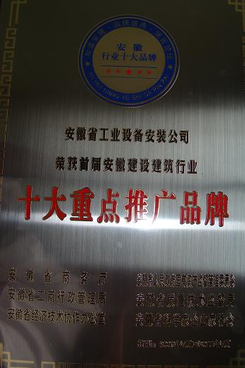 公司榮獲“首屆安徽建設(shè)建筑行業(yè)十大重點(diǎn)推廣品牌”